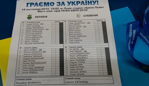 Sport.ua Сегодня состоится первый поединок плей-офф Украина - Словения за право сыграть на чемпионате Европы во Франции. Матч начнется в 19.00 на стадионе «Арена Львов» во Львове. Анонс поединка от Sport.ua здесь. ТВ-трансляцию можно посмотреть на каналах «Украина» и «Футбол 1» Украина – Словения. Видеотрансляция LIVE Украина – Словения. Текстовая трансляция LIVE Качайте нашеандроид-приложение ТАБЛОи получайте уведомления о голах на свой смартфон! 20:51. Звучит финальный свисток. 2:0, поздравляет всех с победой!!! 20:46. Последние минуты матча.«Арена Львов» поет гимн Украины. ![]()